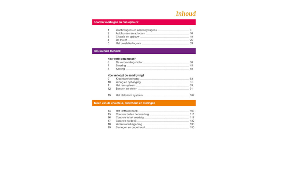 - taken van de chauffeur: onderhoud, controles en omgaan met storingen.